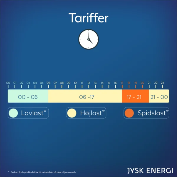 - Vær opmærksom på dit netselskab: De konkrete tarifpriser varierer mellem de forskellige netselskaber, da det er dem, der ejer elnettet i dit lokalområde. Det kan betale sig at tjekke dit netselskabs konkrete priser og tidsintervaller.